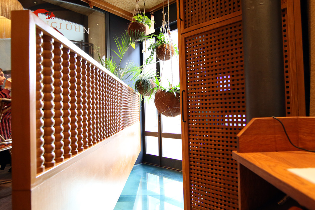 Innenausbau Restaurant Konzept, Planung und Realisation Innenausbau Gestaltung und Materialisierung, Wände, Oberflächen, Möblierung, Licht, Schlosserarbeiten, Schreinerarbeiten und Malerarbeiten