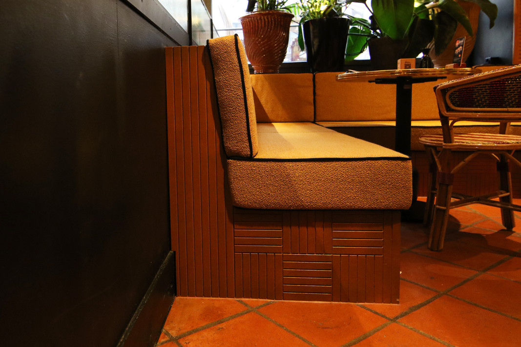 Realisation Innenausbau, Sitzbänke, Wandkassettierung, Barverkleidung, Oberflächen, Patina und Stahlarbeiten