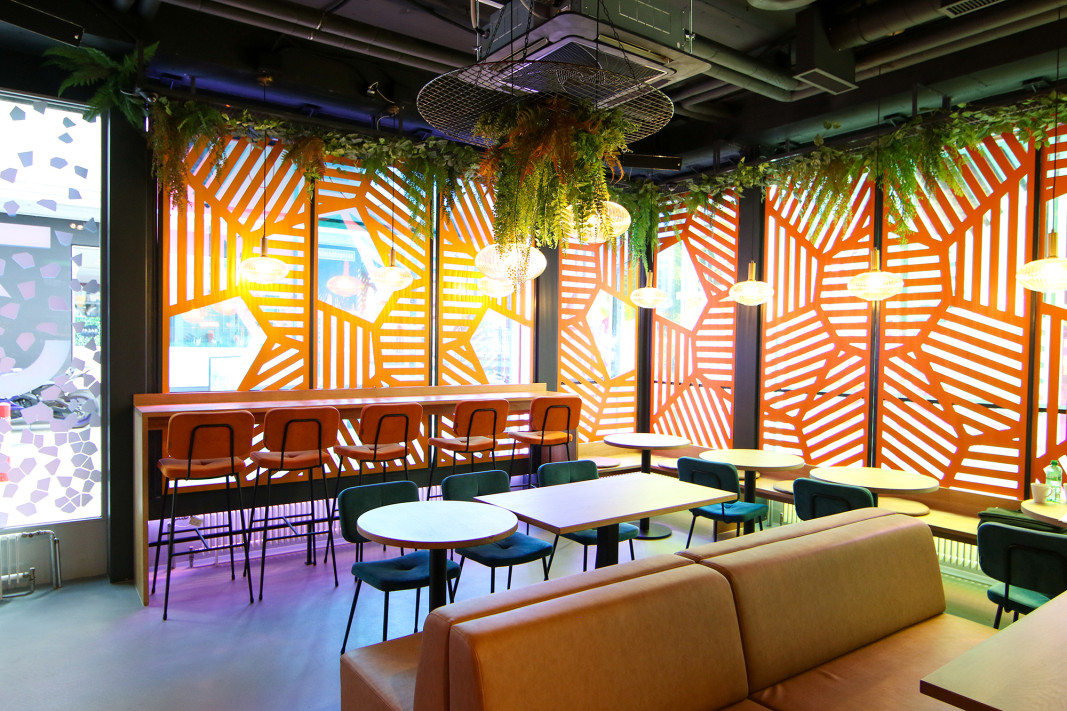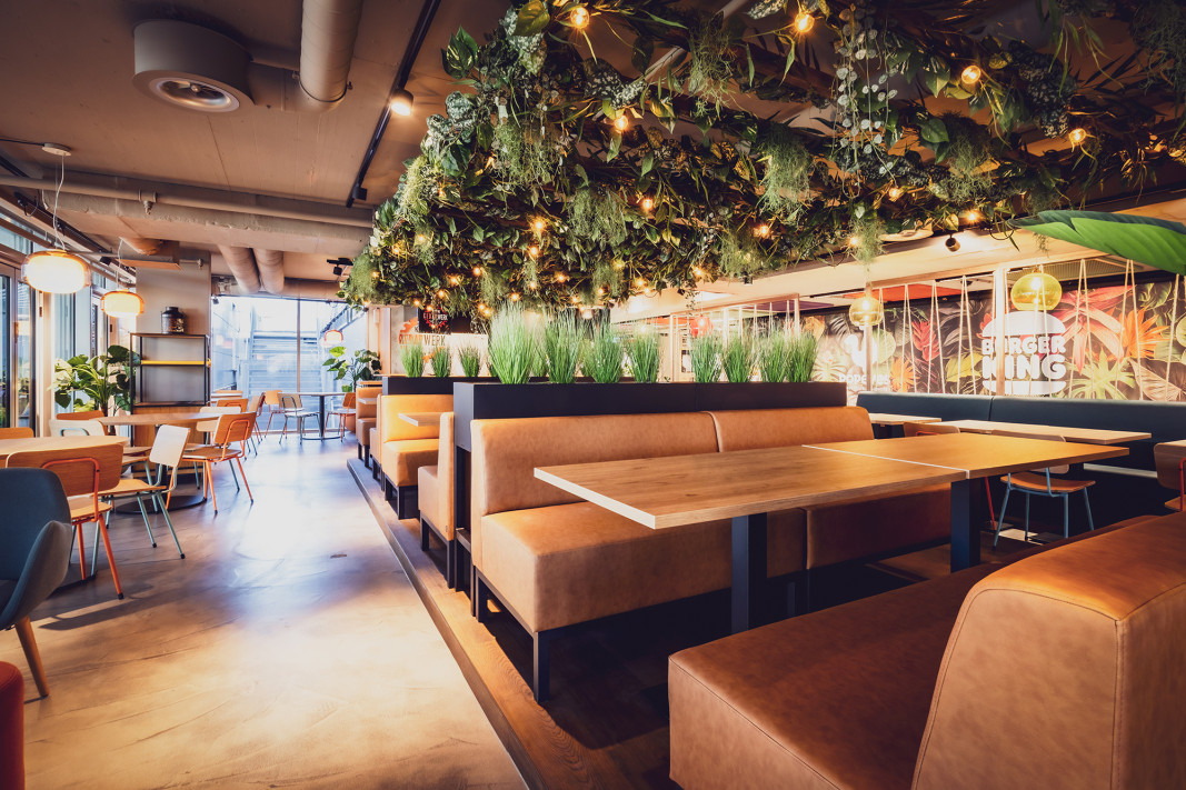 Innenausbau Restaurant Konzept, Planung und Realisation Innenausbau Gestaltung und Materialisierung, Wände, Oberflächen, Möblierung, Licht, Schlosserarbeiten und Schreinerarbeiten und Malerarbeiten