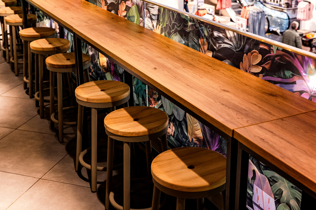 Gestaltung und Materialisierung, Wände, Oberflächen, Möblierung, Warenträger, Bar,Einkleidung Kühlregale, Licht, Schlosserarbeiten